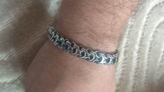 Full-fledged silver bracelet on hand. This weaving is quite time consuming to execute, and most jewelers do not have a sufficient level of manufacturing skills to achieve high quality jewelry, let alone just make it. At the moment, the quality of our work from this weaving is significantly superior to most other manufacturers.