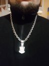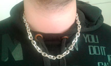 Full-fledged silver chain around the neck.