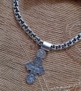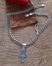 Depicted on the cross: The crucifixion of Christ. Holy Trinity. Archangel Michael. Holy Warriors. Tikhvin icon of the Mother of God. Orthodox cross.Height: 8 mm