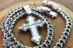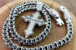 Мужской серебряный набор: крест с распятием 40 грамм и цепочка Рамзес 120 грамм