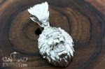 Масивний кулон-підвіска у формі голови лева — виразний символ сили, влади та впевненості. Лицьова сторона виконана в об'ємній скульптурній техніці: детально опрацьована грива, розкрита пащу та акцент на хижому погляді створюють реалістичний та динамічний образ. Природна гра світла на сріблі підкреслює глибину рельєфу і надає виробу благородного блиску.