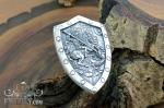Стильна підвіска у формі щита з рельєфним зображенням Георгія Побідоносця, що вражає дракона. Лицьова сторона виконана з високою деталізацією: фактура дерева, об'ємні заклепки по контуру та виразний сюжет створюють ефект старовинного геральдичного артефакту. Виріб підкреслює силу, захист та чоловічий характер.